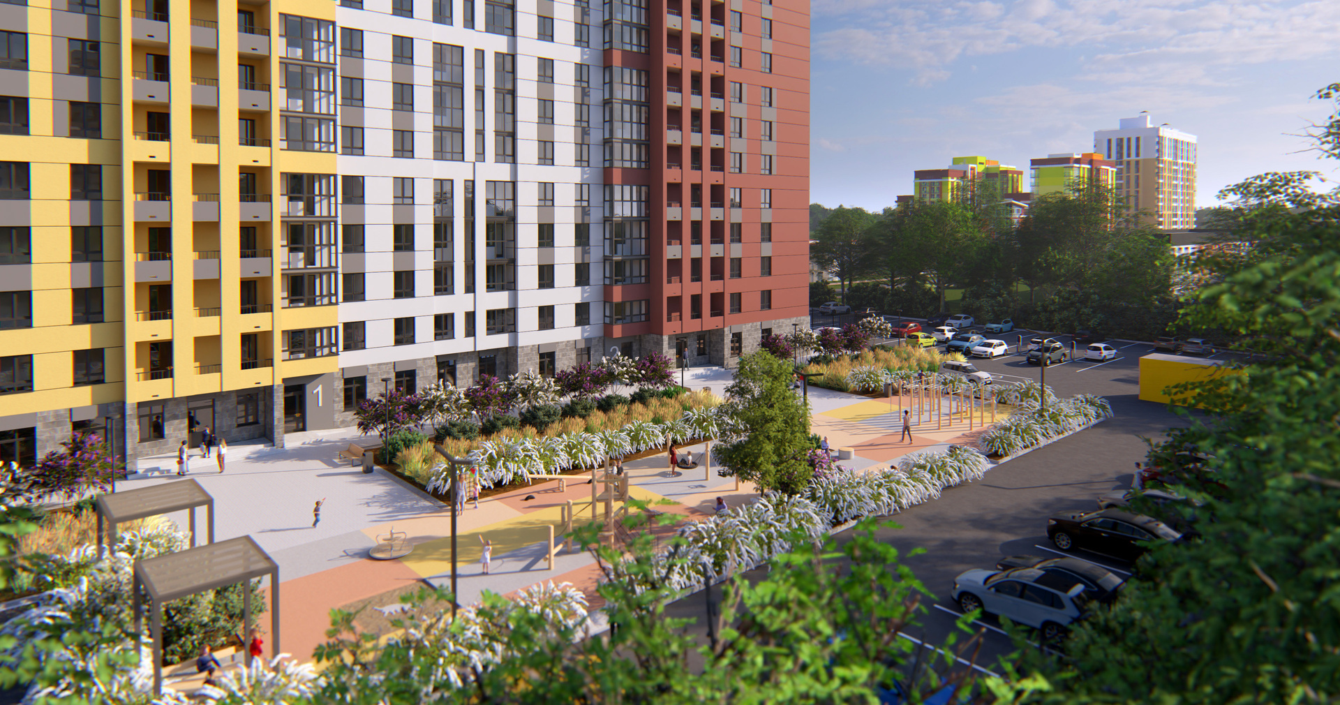 Рядом с жилым комплексом находятся общеобразовательная и спортивная школы, детский сад, площадки для спорта и развлечений, остановки общественного транспорта.